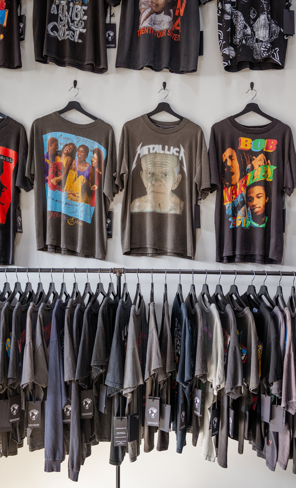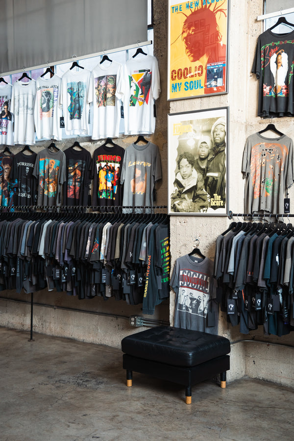 Welcome to our showroom nestled in the heart of Los Angeles. A captivating three-level space. Where our capsule collections are available and the best curated selection of vintage t-shirts . Immerse yourself in a private appointment setting, ensuring an exclusive and personalized shopping experience.
