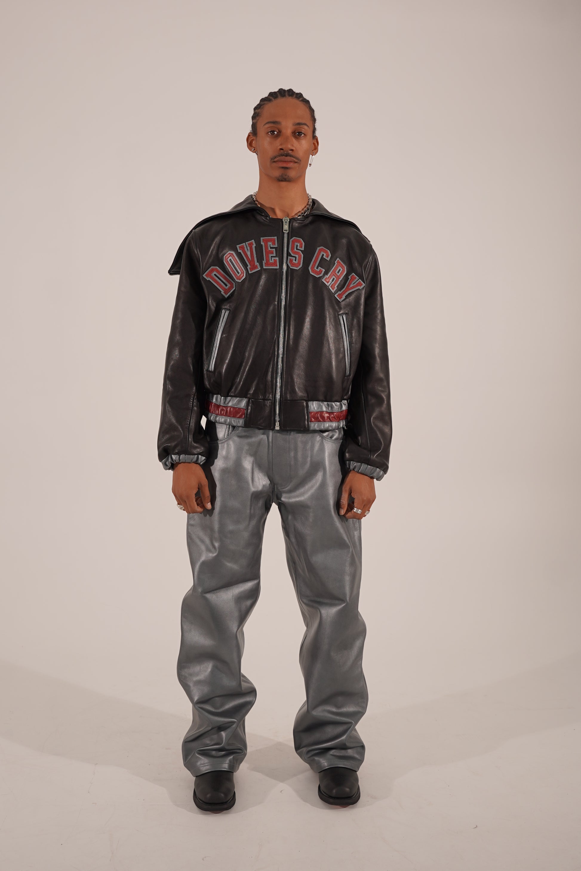Wir stellen vor: Die Taubenschrei-Jacke. Diese Jacke ist ein fester Bestandteil unserer Kollektion und besteht vollständig aus hochwertigem Rindsleder. Sie verfügt über Lederapplikationen in Form von Buchstaben, die mit aufwendigen Stickereien verziert sind, während die Tauben auf dem Rücken mit detaillierter Kettenstich-Stickerei versehen sind. Ein zeitloses Stück, das klassische Handwerkskunst mit unverwechselbarem Design verbindet.